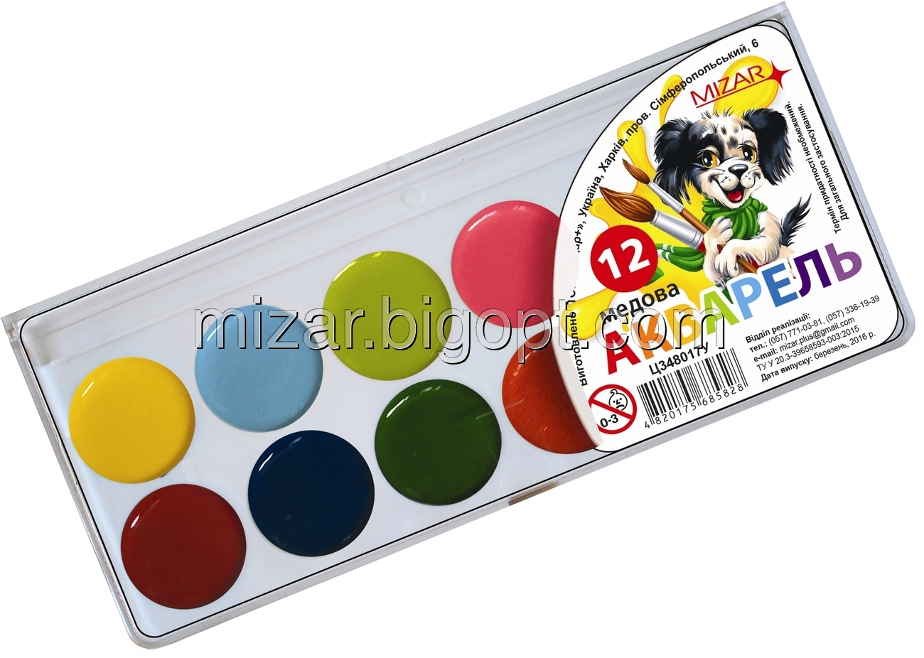 Акварельні фарби 12 кол. СЕРІЯ "Гавчик та Мурчик"