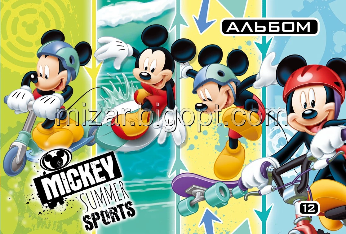 Альбом для малювання "Mickey Mouse" новий дизайн, яскраві обкладинка та білосніжний папір. Має оригінальну текстуру і призначений для малювання акварельними і гуашевими фарбами. Для виробництва альбомів використовуються найсучасніші поліграфічні технології.