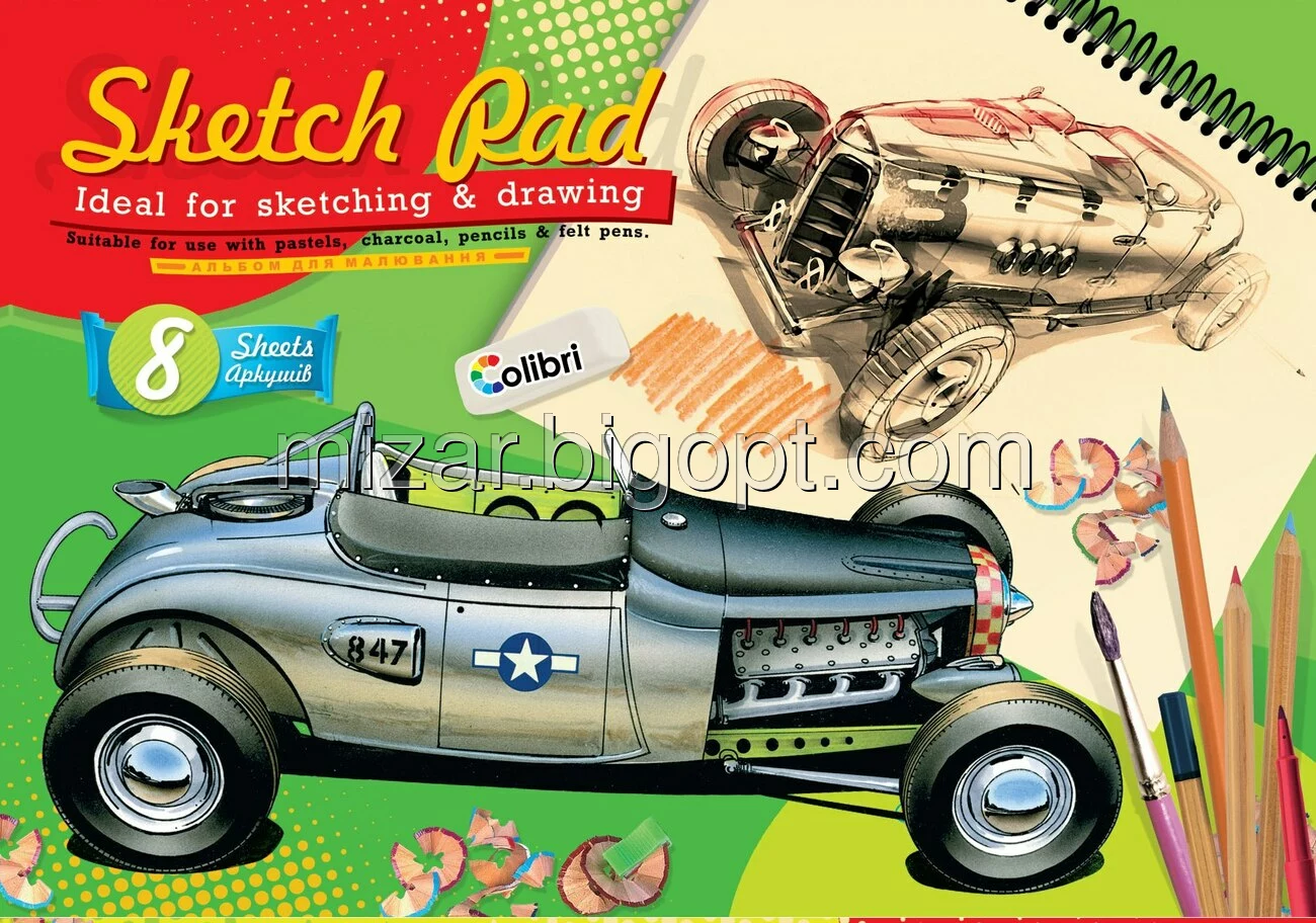 Альбом для малювання серія "Ретро авто". Яскравий  дизайн обкладинки та біленої целюлози,вироблений по сучаснійшим технологіям  та створенний для малювання фарбами  та олівцями.