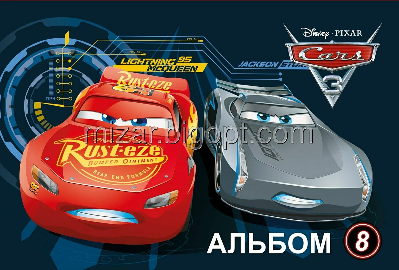 Альбом для малювання "Тачки 3" новий дизайн, яскрава обкладинка та білосніжний папір. Має оригінальну текстуру і призначений для малювання акварельними і гуашевими фарбами. Для виробництва альбомів використовуються найсучасніші поліграфічні технології.