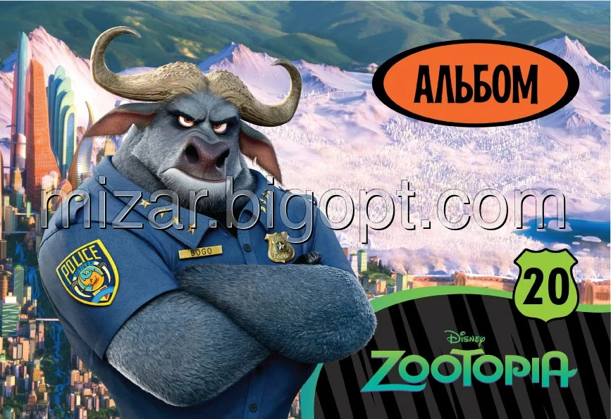 Альбом для малювання  "ЗООТРОПОЛІС" новий дизайн, яскрава обкладинка та білосніжний папір. Має оригінальну текстуру і призначений для малювання акварельними і гуашевими фарбами. Для виробництва альбомів використовуються найсучасніші поліграфічні технології.