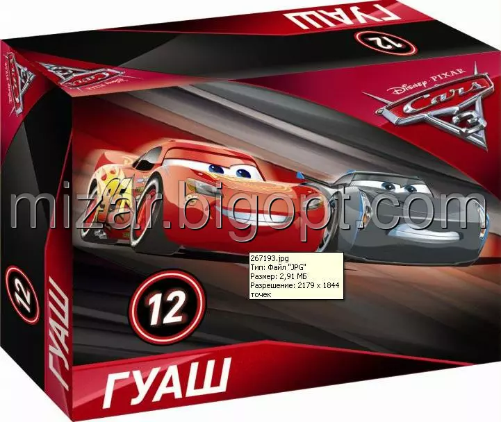 Гуаш "Тачки 3" 12 кол.